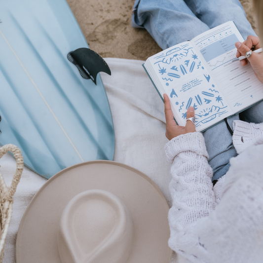 The Saltwater Path Surf Journal is a daily journal for surf days and every days. An easy to fill out surf log lets you record your surf experience and clear prompts help you to capture the thoughts & feelings that came to you in water. On the days that the responsibilities of life, work or the surf conditions have kept you out of the water there are different prompts to help you feel connected, grateful & prepared for your next surf.